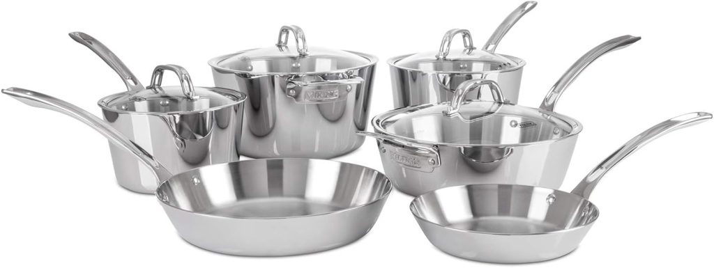 Viking 3 Ply Stainless Steel Cookware is popular among home cooks and professional chefs. This cookware promises durability, even heating, and easy maintenance.